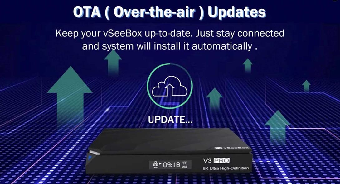 A group of developers and engineers are working on your VSeeBox V3 Pro to be better and add new features all the time. When an update is released, the system will automatically bring the update to your device. No manual actions at all!